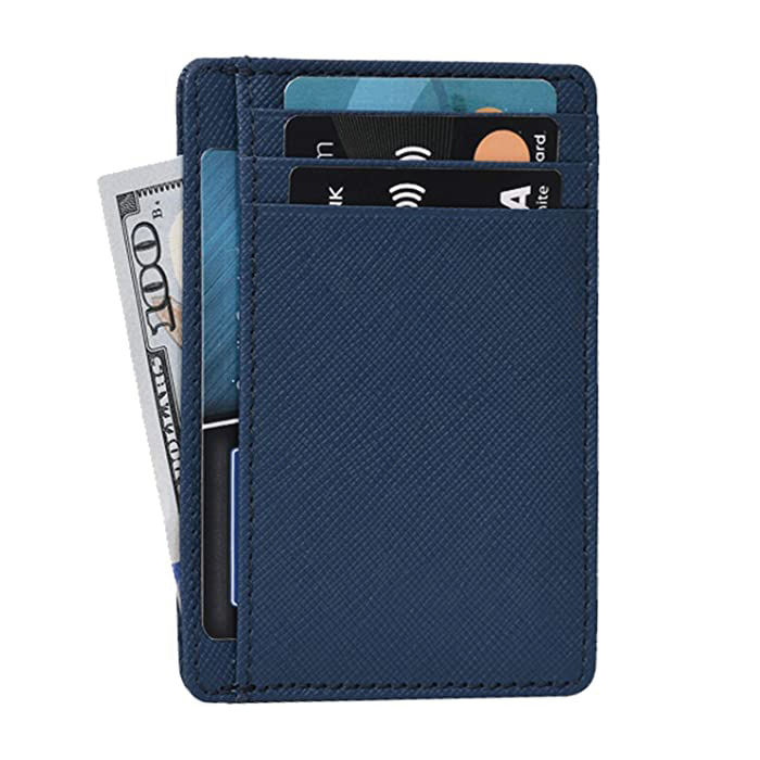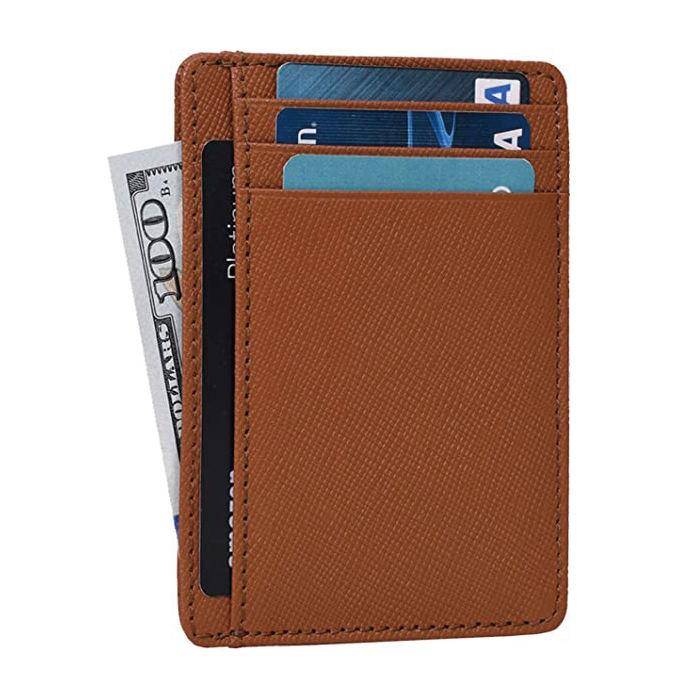 남성용 슬림 미니멀리스트 전면 포켓 가죽 RFID 차단 pu 카드 홀더