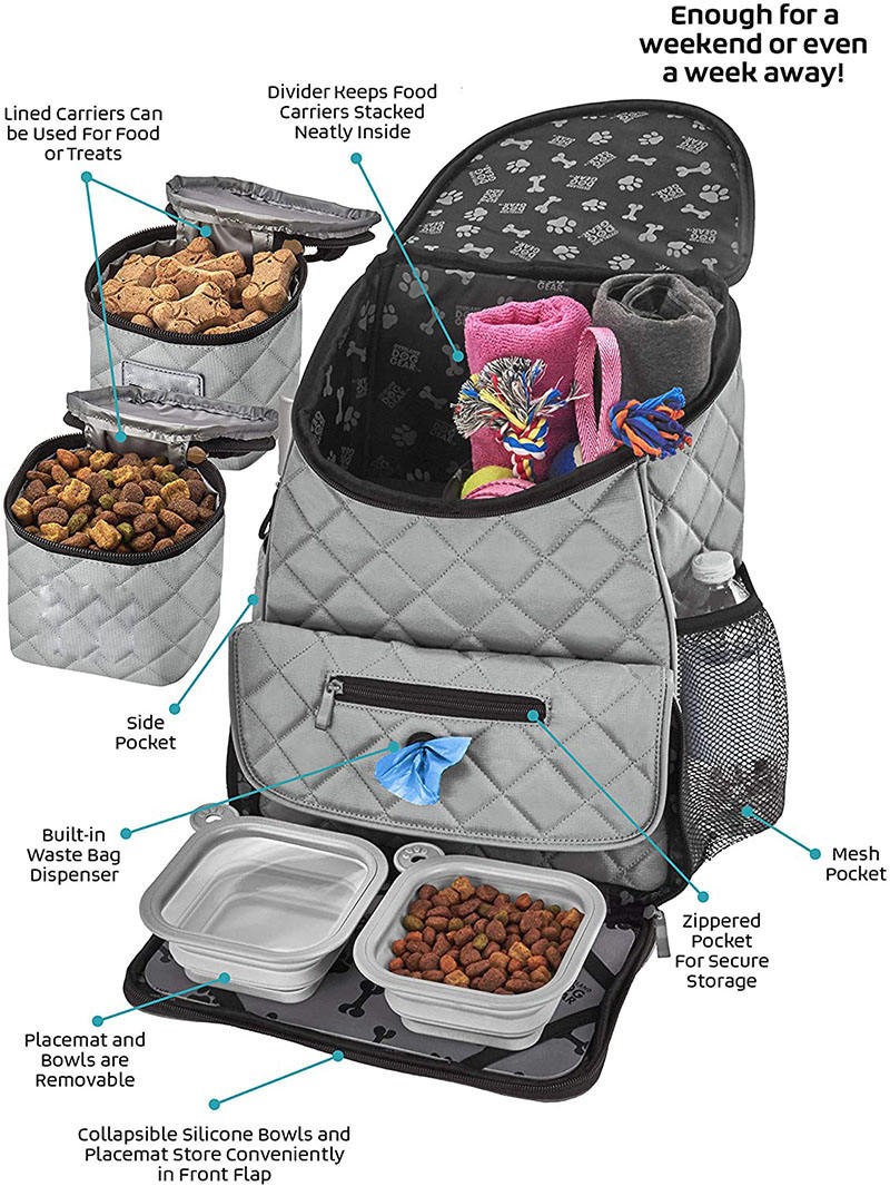 홈페이지 / 제품 / 애완동물 가방 / 다기능 완벽한 주말 애완 동물 여행 세트 개 여행 주최자 가방 배낭