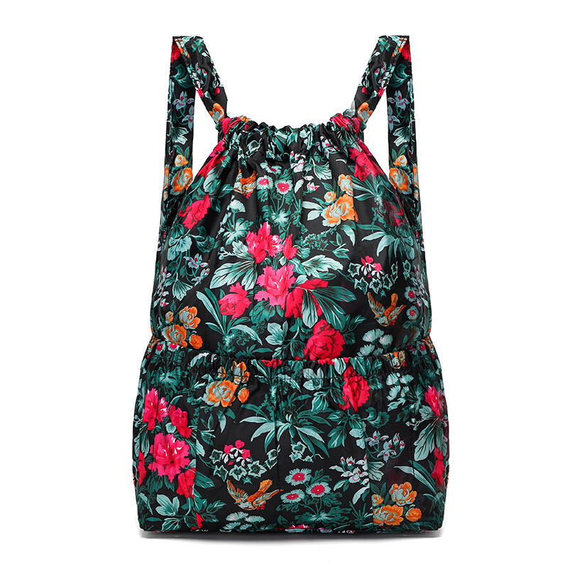 홈페이지 / 제품 / 배낭 / 스포츠 백팩 / 대용량 Drawstring 배낭 여성 꽃 민족 스타일 방수 나일론 배낭 배낭