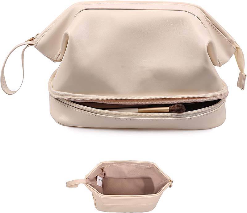 대형 여성 더블 레이어 메이크업 가방 사용자 정의 pu 가죽 화장품 주최자 더블 레이어 화장품 스토리지 세면 용품 가방