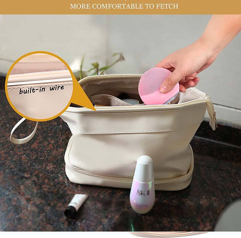 홈페이지 / 제품 / 화장품 및 세면도구 가방 / 화장품 가방 / 대형 여성 더블 레이어 메이크업 가방 사용자 정의 pu 가죽 화장품 주최자 더블 레이어 화장품 스토리지 세면 용품 가방