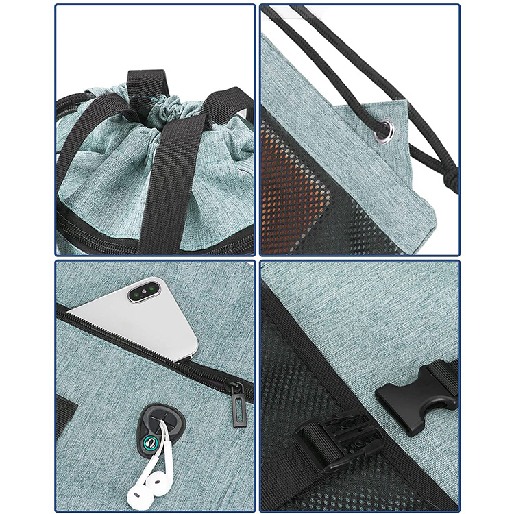 | 도매 방수 체육관 스포츠 졸라매는 끈 배낭 이어폰 케이블 구멍이 있는 맞춤형 졸라매는 끈 배낭 | ||