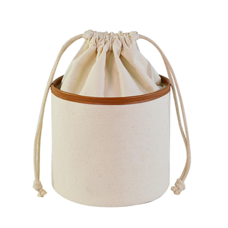 | 럭셔리 멋진 사용자 정의 로고 코튼 캔버스 화장품 가방 졸라 매는 끈 폐쇄 스토리지 배럴 가방을 확인하십시오 | ||