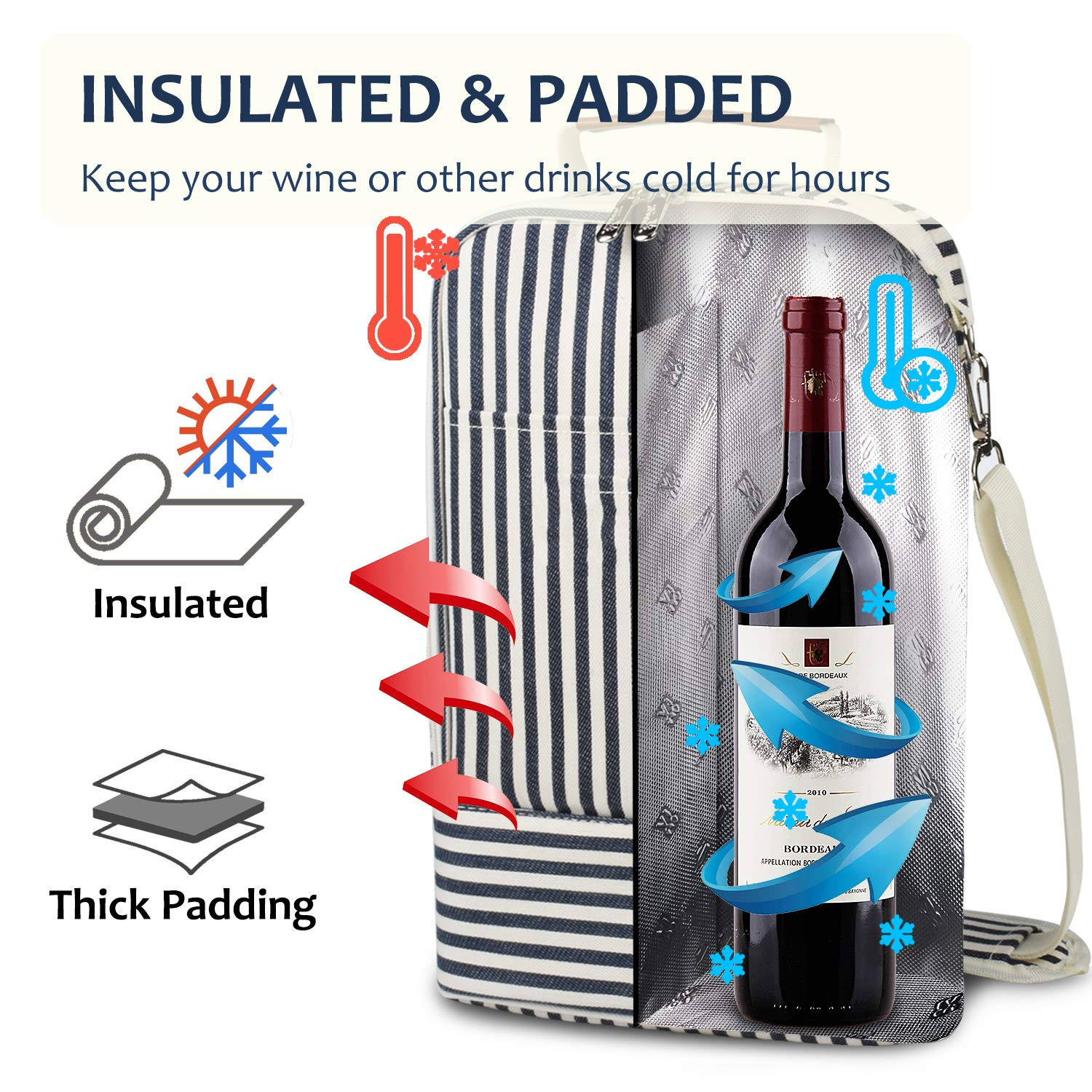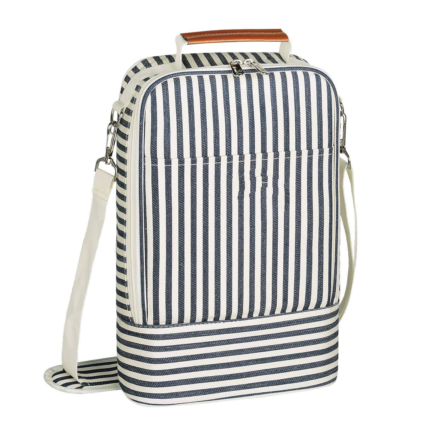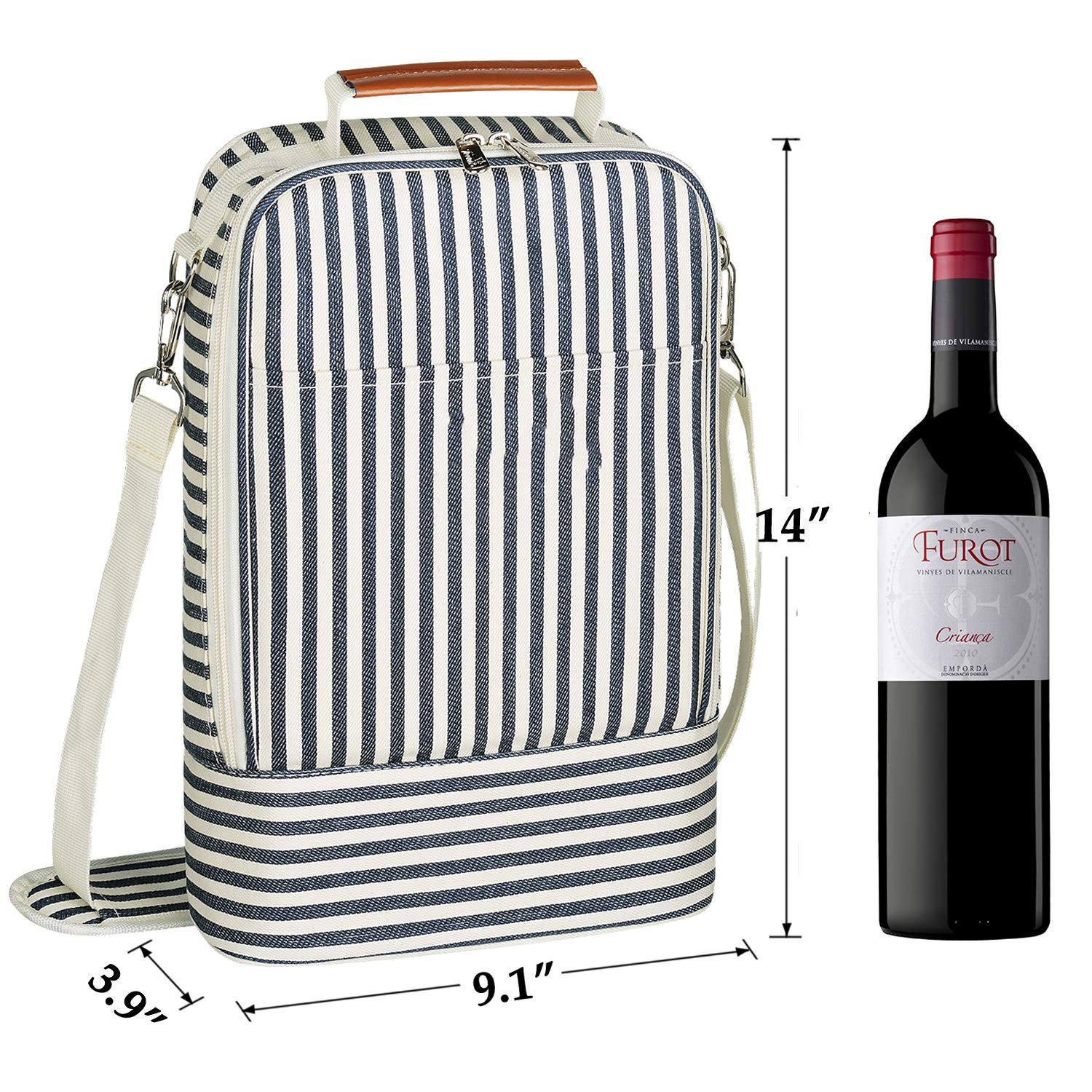 분배기와 패딩 어깨 끈이있는 남성 여성 선물을위한 도매 프리미엄 절연 2 병 와인 토트 쿨러 가방 캐리어