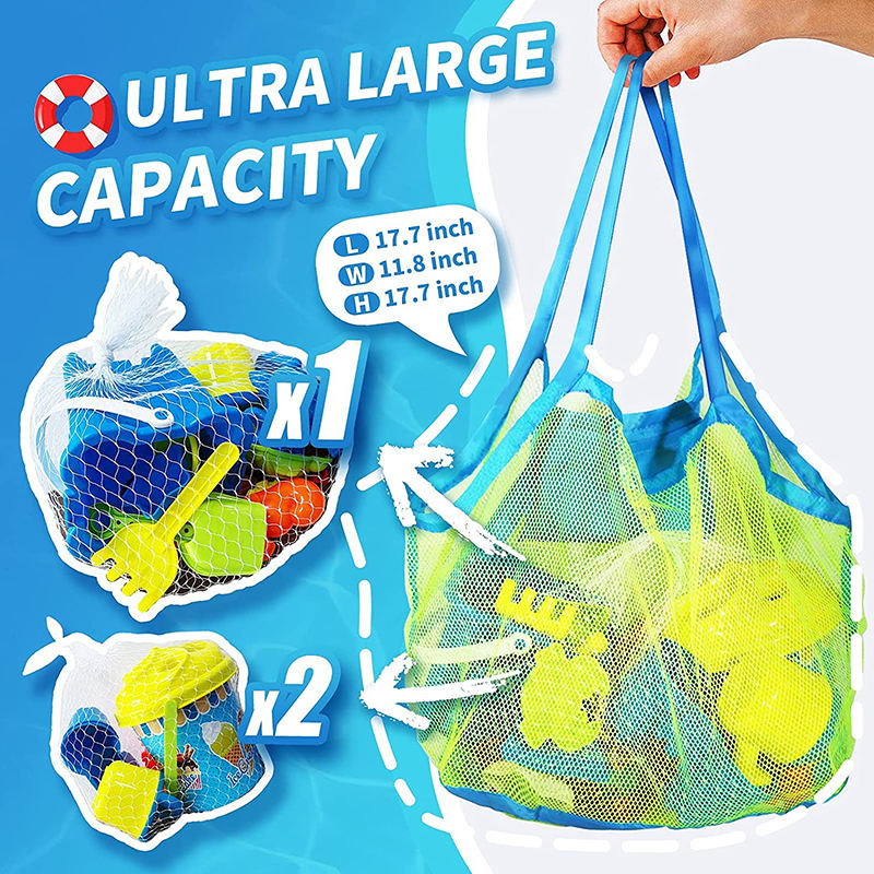 홈페이지 / 제품 / 쇼핑백 / 메쉬백 / 비치 가방 쇼핑 토트 튼튼한 모래 멀리 키즈 비치 수영 및 풀 장난감 공 보관 가방 팩