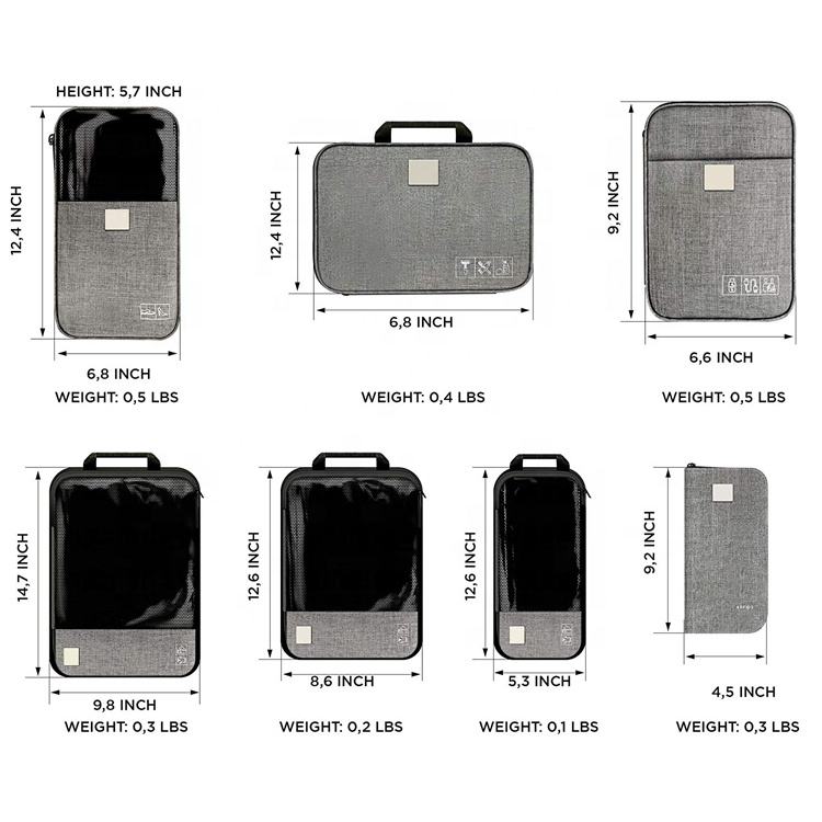 | 안건 | 신발 가방, 세면도구 가방, 지갑 및 케이블 보관 가방이 있는 여행용 포장 큐브 7개 | ||||||