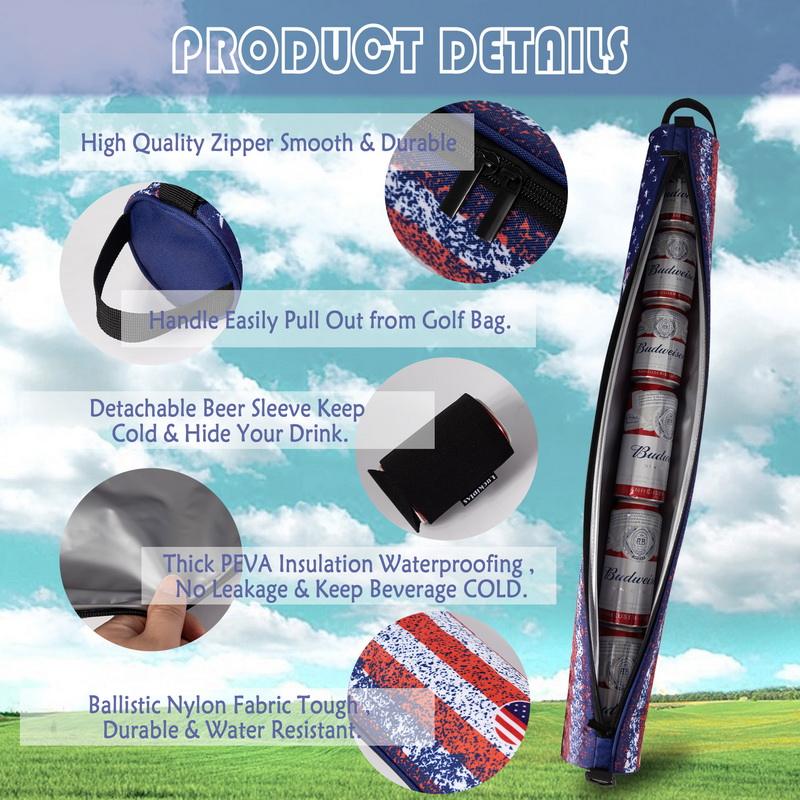 골프 상점을위한 승화 쿨러 가방 최대 7 캔 신중하게 도매 골프 튜브 600d 폴리 에스터 맥주 캔 절연 쿨러 가방
