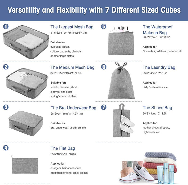 | 상품명 | 여행용 손잡이가 있는 7개 포장 큐브 세트 | ||||||