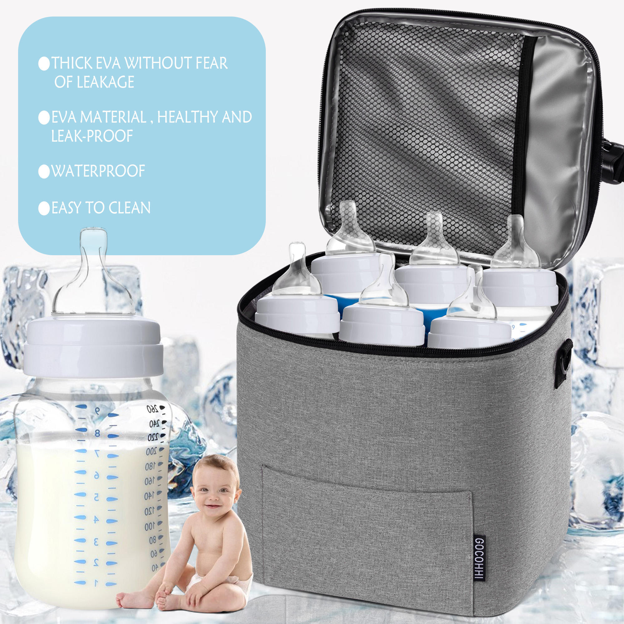 | 이름 | 아이스 팩이있는 모유 쿨러 백 재사용 가능한 절연 병 가방 휴대용 열 절연 도시락 상자 | ||||||