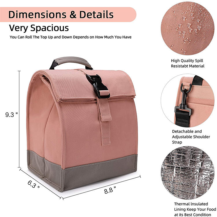 | 어깨 끈이있는 고품질 방수 롤탑 열 절연 점심 가방 | ||