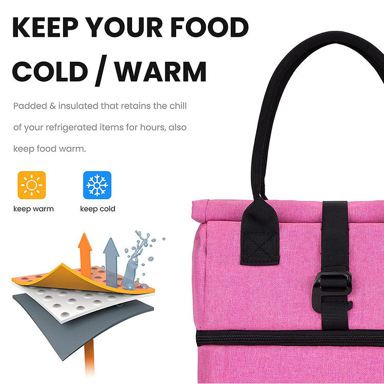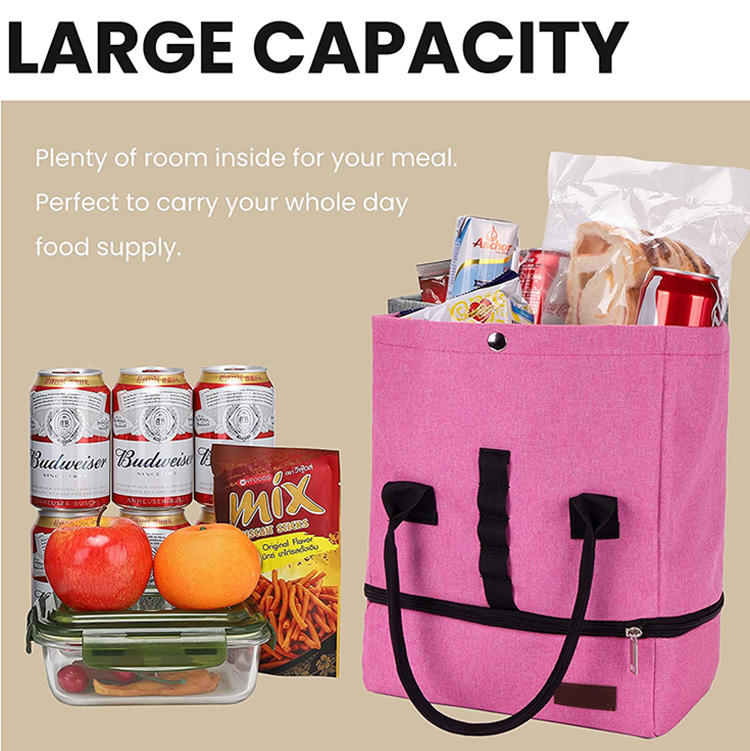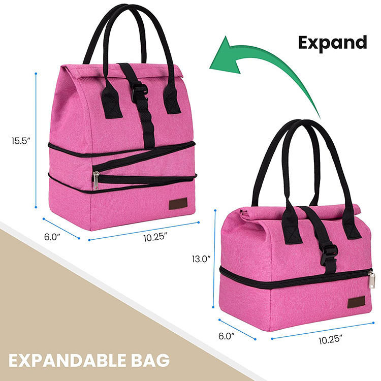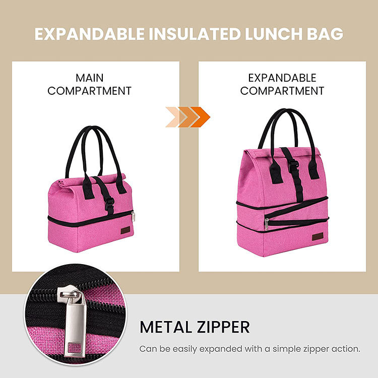 | 여성을 위한 핫 핑크 확장 가능한 초대형 절연 쿨러 런치 토트 백 | ||