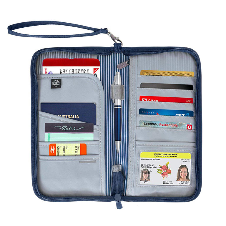 여행 남성 지퍼 지갑 여권 서류 카드 홀더