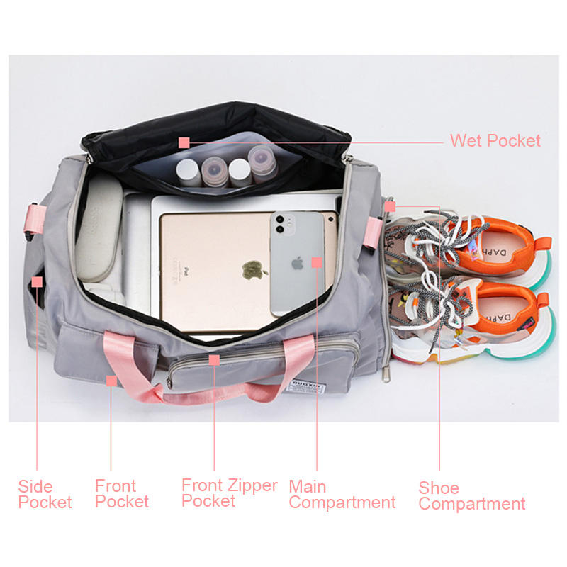 | 여행 수하물 핸드백 여성 체육관 스포츠 더플 백 신발 칸이있는 별도의 젖은 주머니 | ||