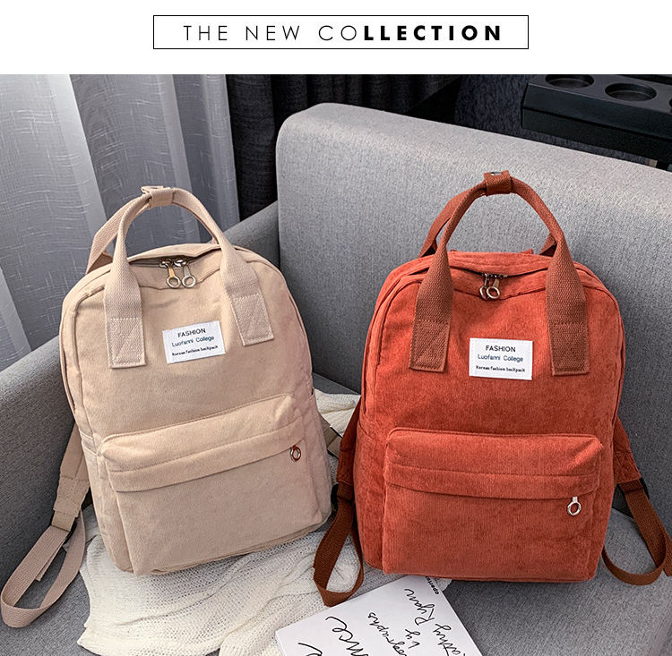 여행 학교 토트 코듀로이 배낭 소녀 청소년 키즈 배낭 여성을위한 맞춤형 코듀로이 배낭 백백
