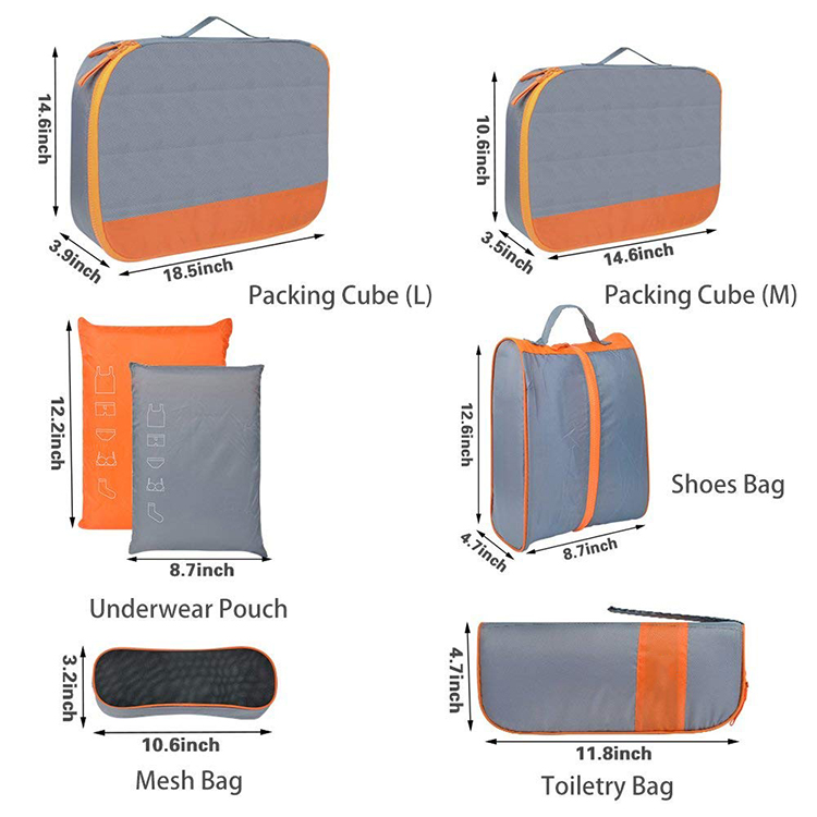 여행 7pc 세트 파우치 포장 스토리지 수하물 속옷 주최자 가방 큐브 의류 방수