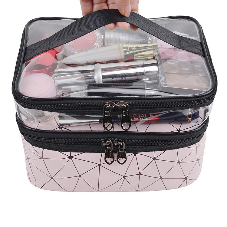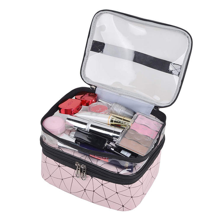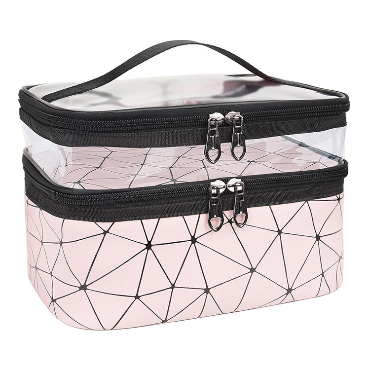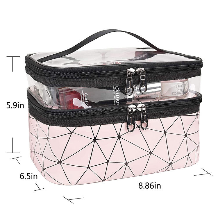 | 예쁜 숙녀 더블 데크 PVC PU 메이크업 Organizer 가방 휴대용 여행 세면 용품 보관 가방 | ||