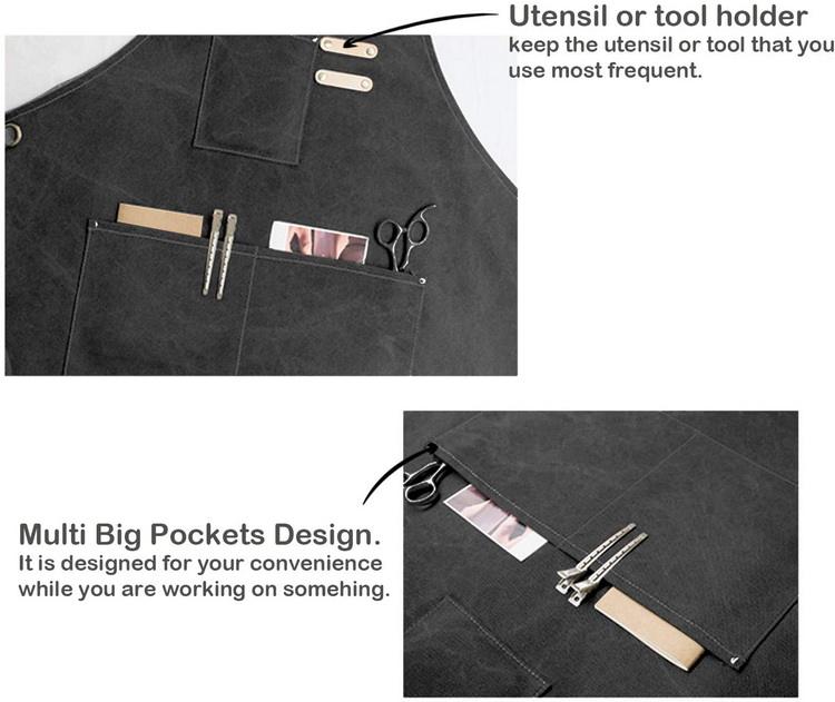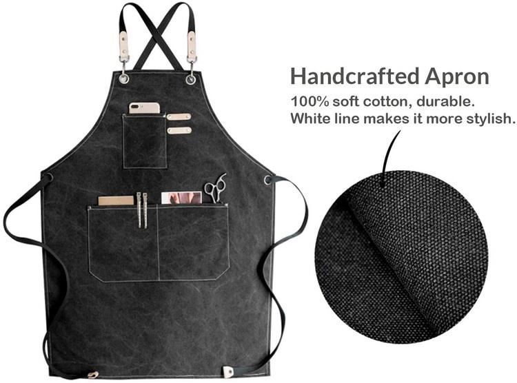 | 안건 | 요리사 앞치마, 여성과 남성을 위한 포켓이 있는 코튼 캔버스 크로스 백 조정 가능한 도구 앞치마 |