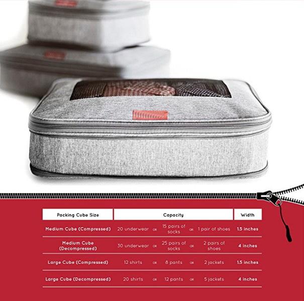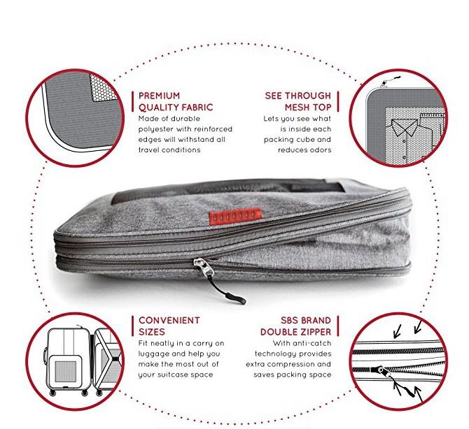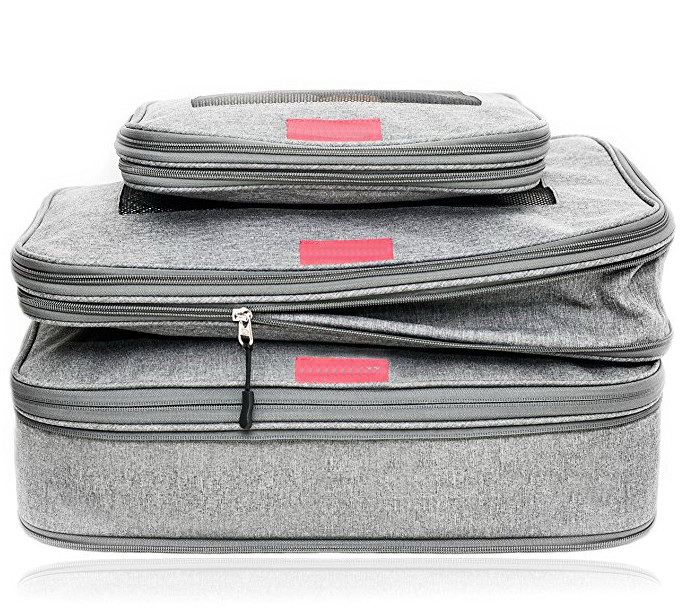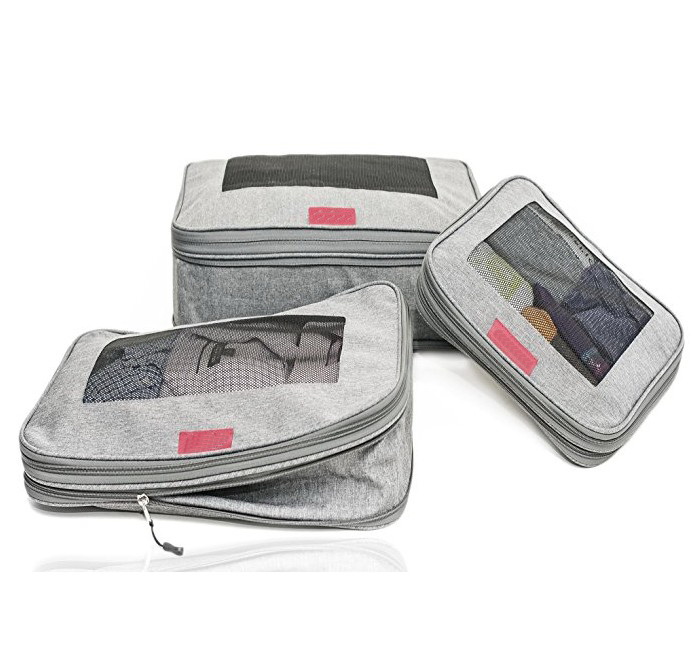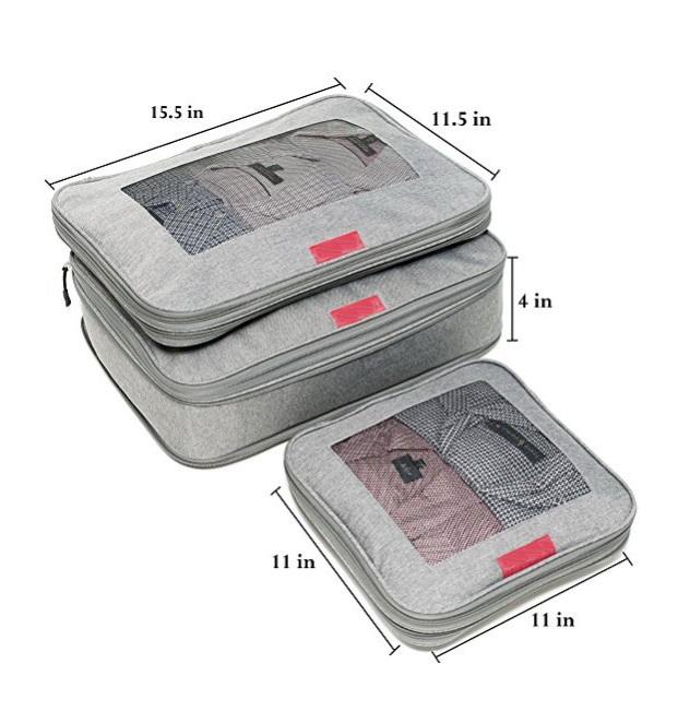 이중 지퍼가 있는 여행용 압축 포장 큐브 수하물 정리함 3세트