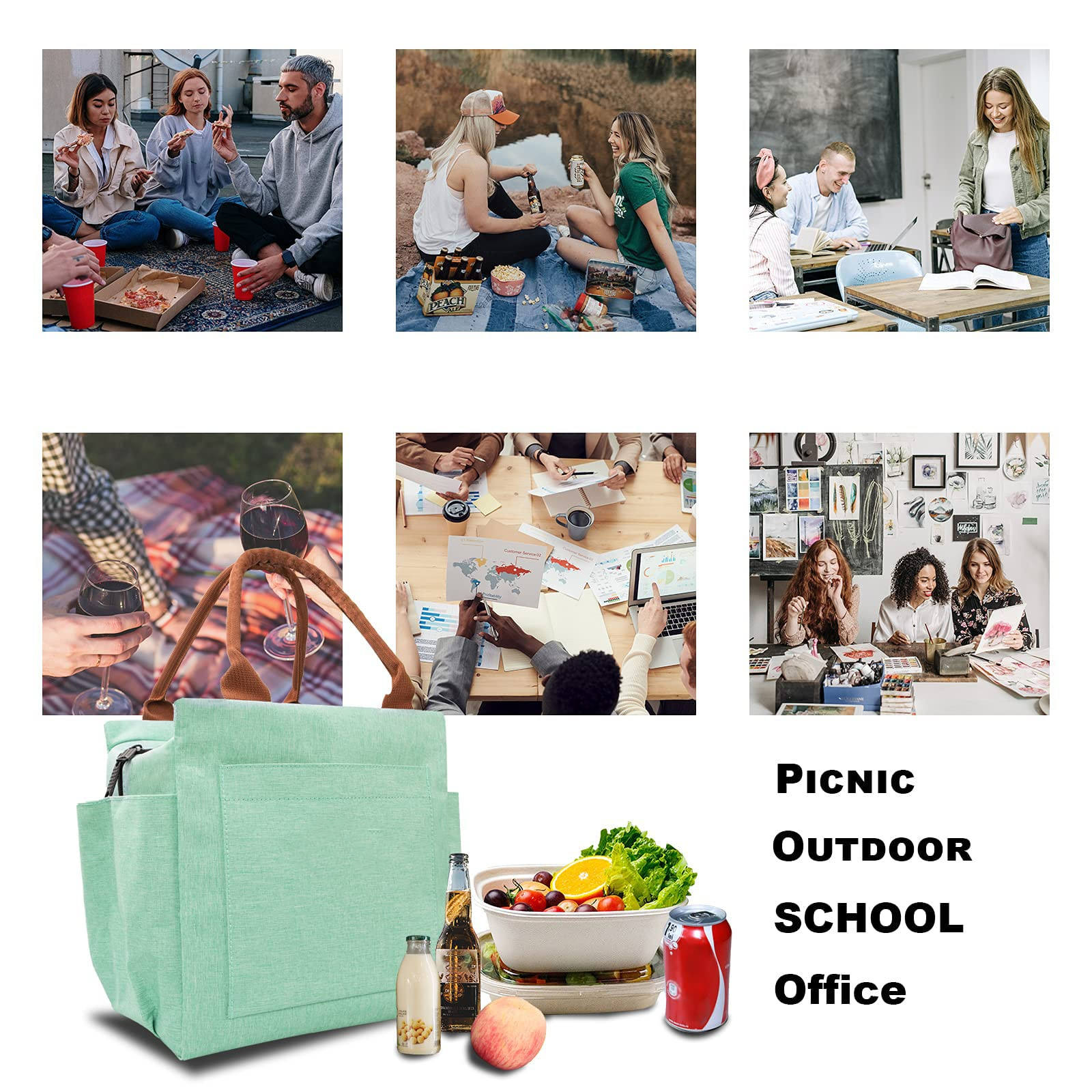 홈페이지 / 제품 / 쿨러백 & 런치백 / 도시락 통 / 재사용 가능한 내구성 여성 열 냉각기 절연 도시락 여행 피크닉을위한 대형 쿨러 토트 백