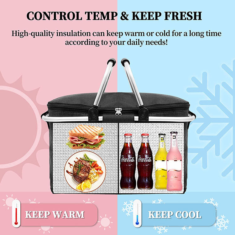 | 이름 | 접이식 피크닉 쿨러 바구니 승화 점심 가방 알루미늄 손잡이가있는 절연 식품 배달 가방 | ||||||