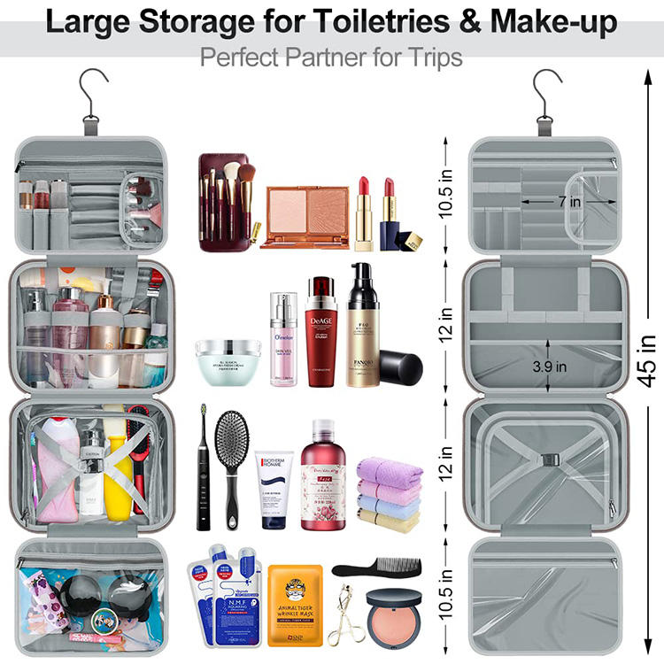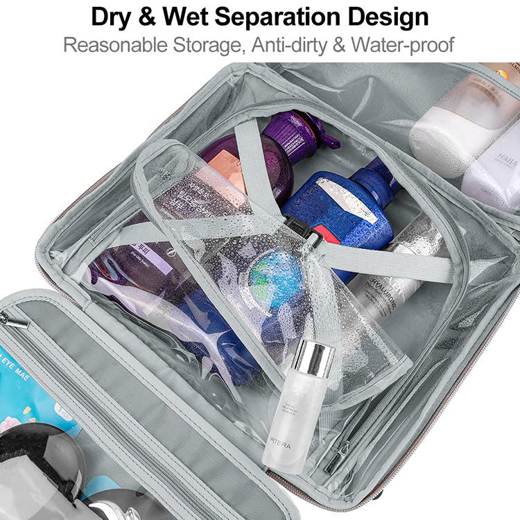 | 젖은 주머니를 가진 큰 수용량 여행 거는 메이크업 저장 부대 Foldable 화장용 조직자 | ||