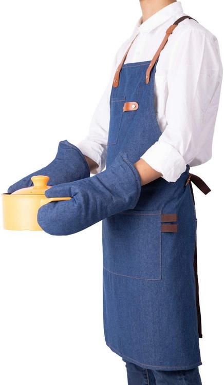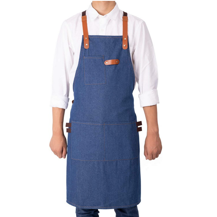 크로스 백 스트랩이 있는 남성 여성 요리사를 위한 데님 요리 앞치마