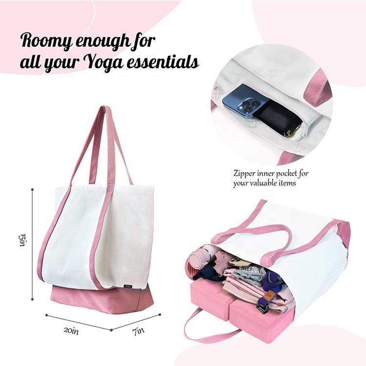 좋은 품질 캔버스 요가 매트 홀더 더플 백 지퍼 내부 포켓 면화 여행 주말 밤새 요가 더플 백