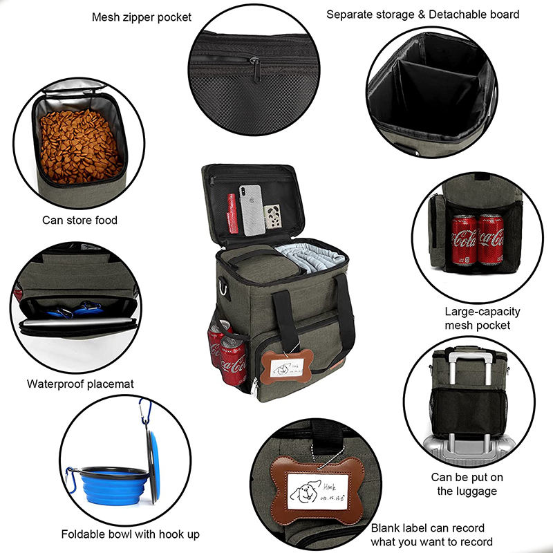 홈페이지 / 제품 / 애완동물 가방 / 주말 개 용품 하이킹 캠핑을위한 여행 가방 세트 애완 동물 액세서리 주최자 토트 슬링 가방 개를위한 여행