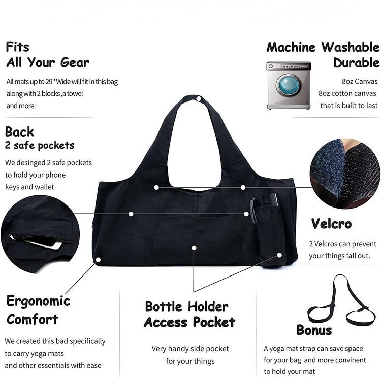 홈페이지 / 제품 / 쇼핑백 / 토트 백 / 주문을 받아서 만들어진 까만 요가 매트 부대 큰 요가 매트 나르는 부대 큰 면화 화포 요가 부대