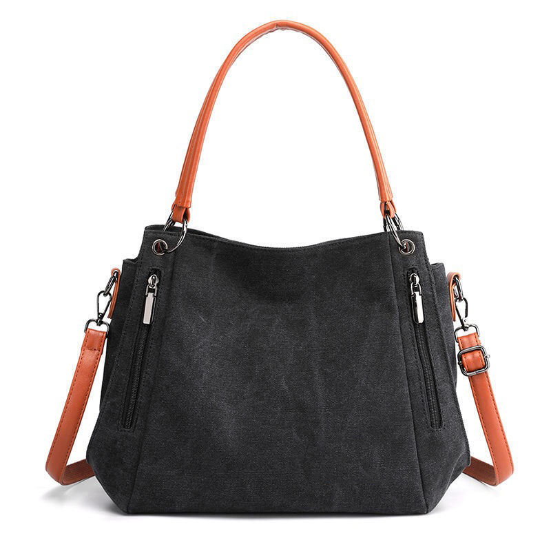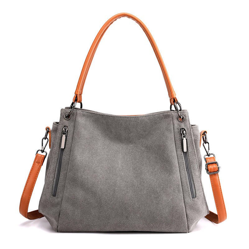 지퍼 포켓이 있는 재활용 캔버스 토트 백 세련된 여성 캐주얼 핸드백 헤비 듀티 숄더 캔버스 백