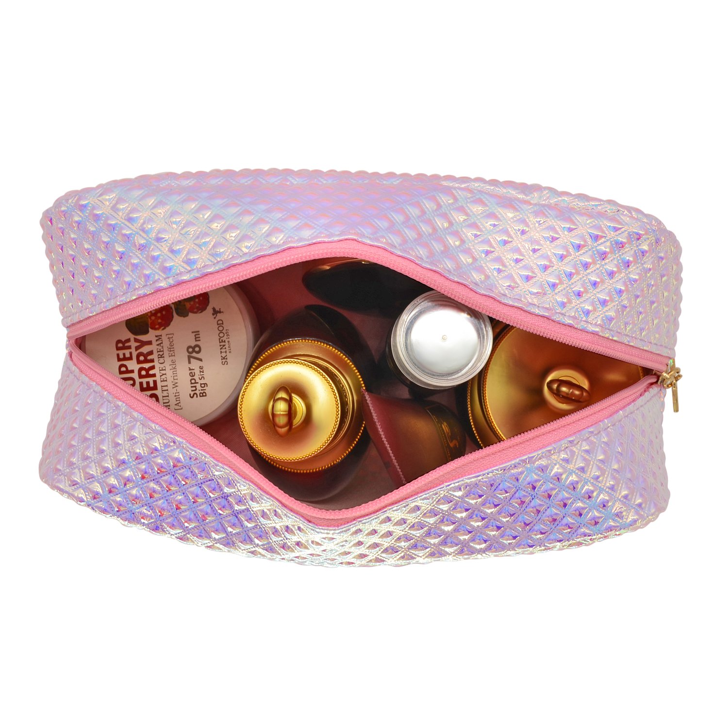 | 패션 홀로그램 핑크 컬러 메이크업 가방 방수 소녀 스타일 귀여운 PU 화장품 지퍼 가방 | ||