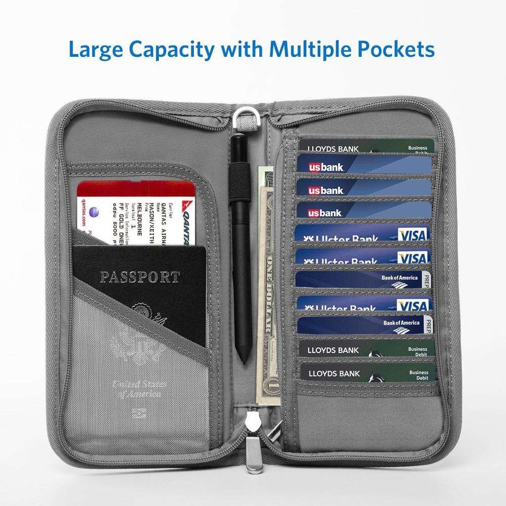 | 안건 | 핸드 스트랩이 있는 회색 여행용 지갑 여권 홀더 가족 문서 카드 |