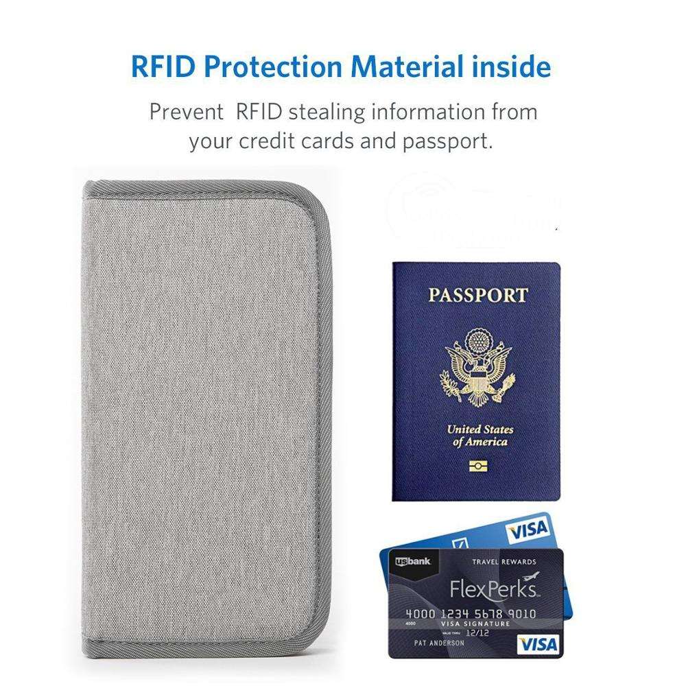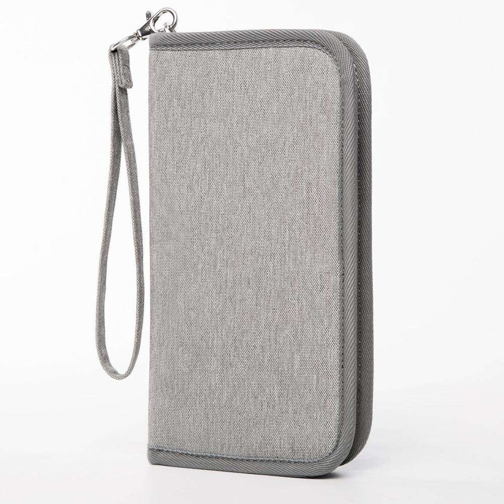 핸드 스트랩이 있는 회색 여행용 지갑 여권 홀더 가족 문서 카드