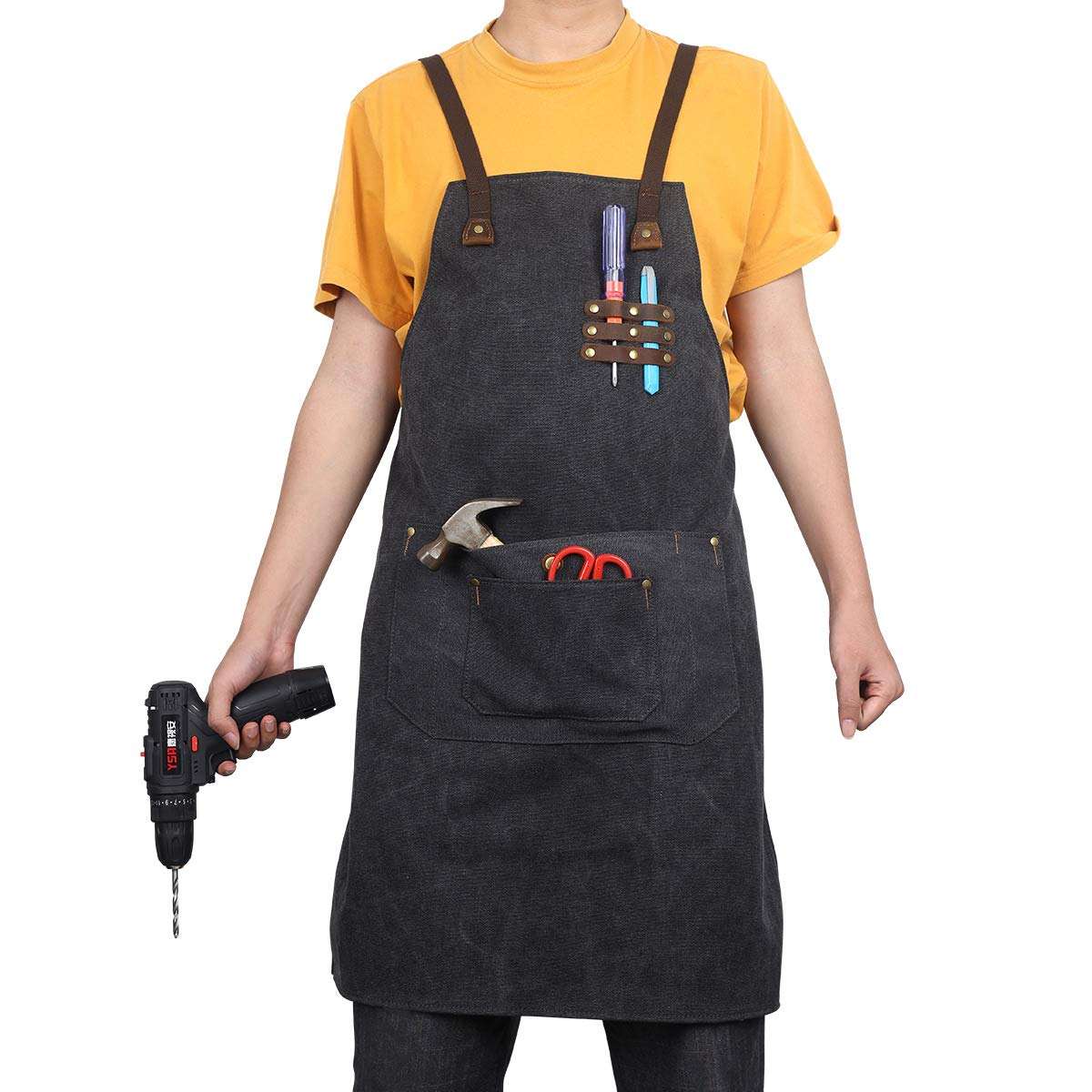 헤비 듀티 내구성 캔버스 작업 도구 워크샵 앞치마 남성용 및 여성용 포켓 포함