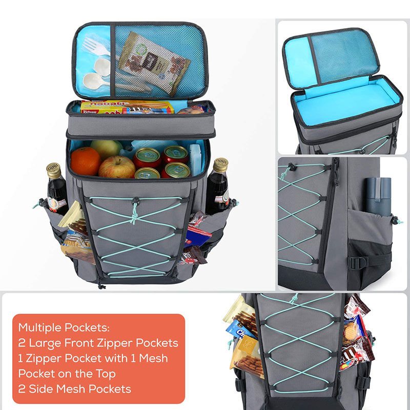 야외 회색 피크닉 하이킹 사용자 정의 로고 절연 배낭 쿨러 점심 가방 열 지퍼 쿨러 가방