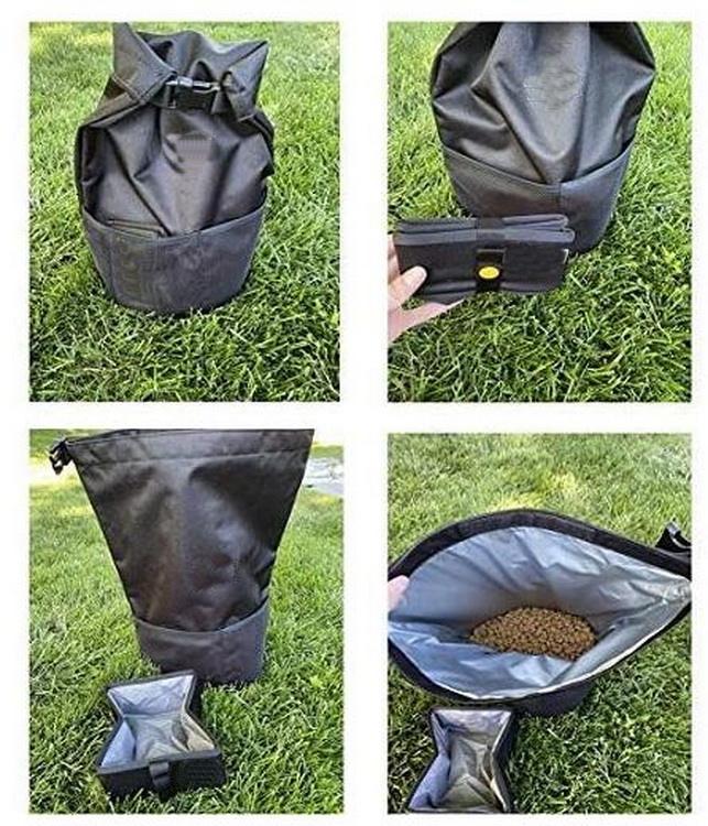 홈페이지 / 제품 / 애완동물 가방 / 휴대용 식품 캐리어 가방 스낵 보관 용기 접을 수있는 그릇이있는 접이식 개밥 여행 가방