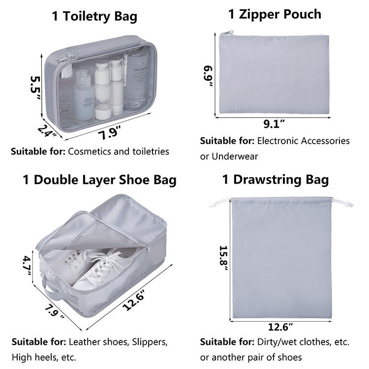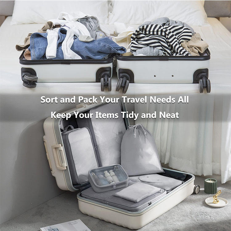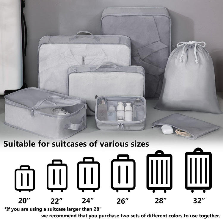 홈페이지 / 제품 / 여행 가방 / 여행 주최자 / 7 조각 세트 세면 용품 신발 가방 보관 주최자 가방 휴대용 여행 경량 포장 큐브 압축