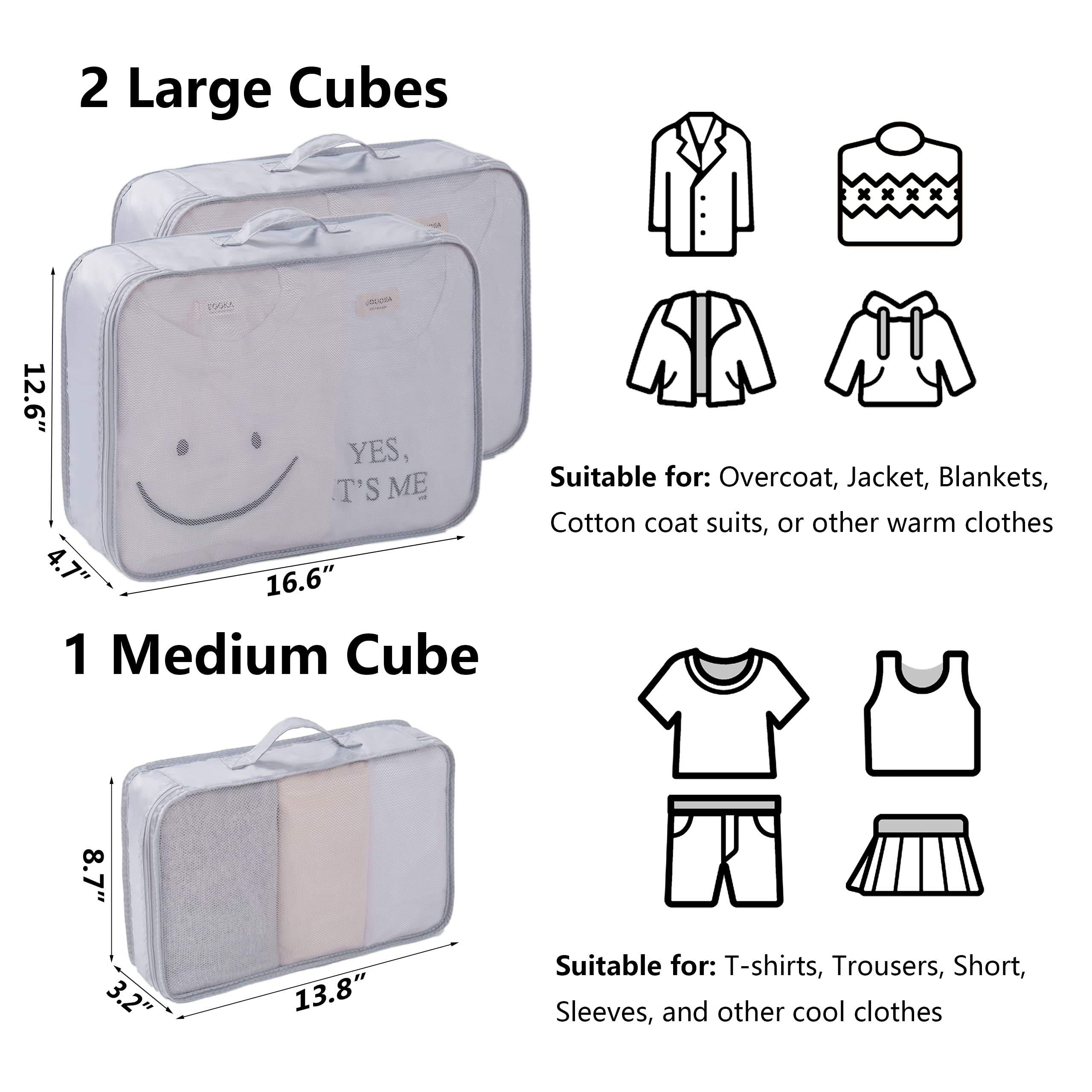 3 pcs 세트 고품질 압축 대형 공간 가방 스토리지 야외 메쉬 포장 큐브 여행 수하물 주최자
