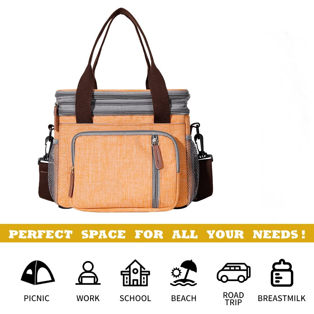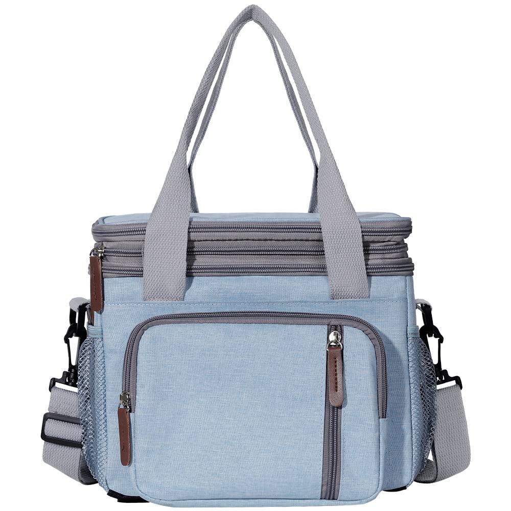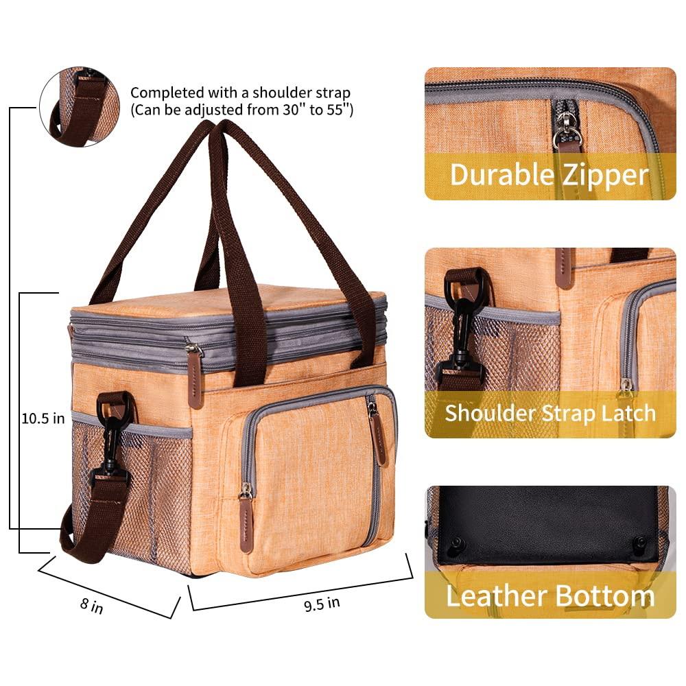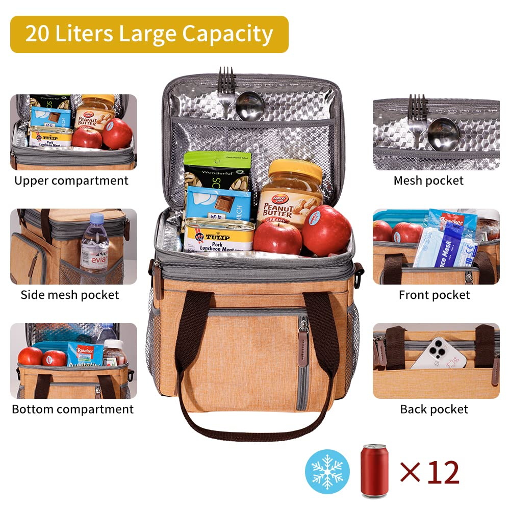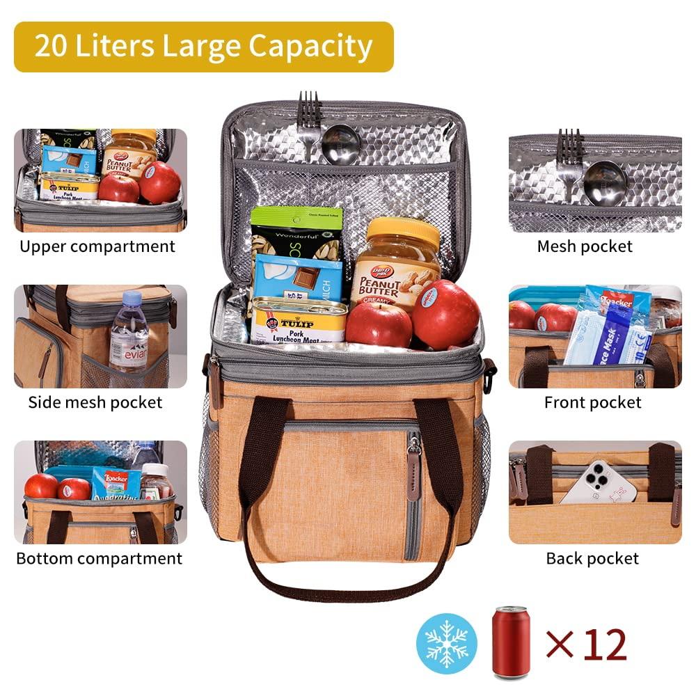 대형 더블 레이어 절연 쿨러 백 음식 점심을 유지하고 피크닉을위한 핸들로 차가운 음료를 마시는 열 캐리어 백